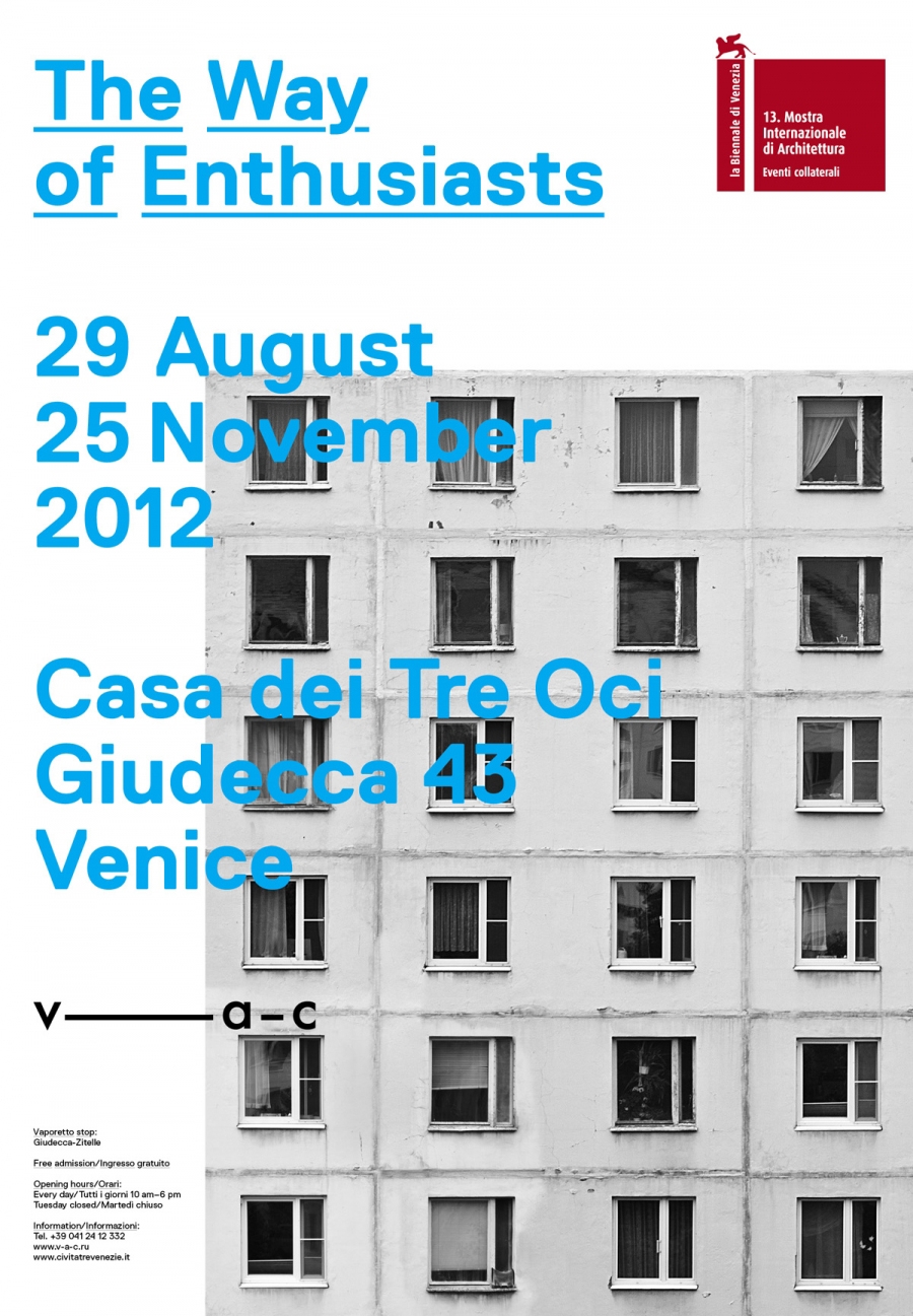V-A-C Foundation, a not-for-profit, Moscow-based institution, committed to the presentation, production and development of Russian Contemporary Art nationally and internationally, is proud to present the exhibition, The Way of Enthusiasts during the 13th International Architecture Exhibition – la Biennale di Venezia.
